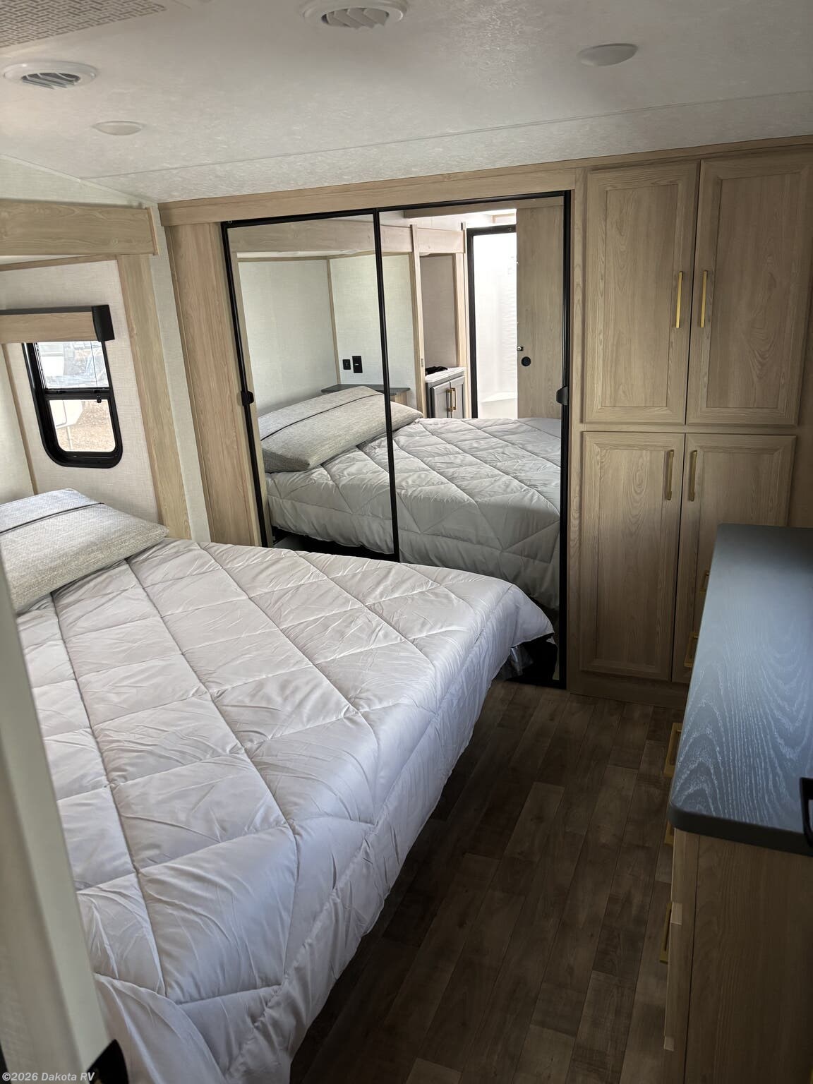 Step inside to find a well-equipped kitchen featuring a microwave, oven, stove top burner, and refrigerator. These amenities are perfect for cooking up delicious meals on the go. Enjoy the luxury of an air conditioning system with a powerful output of 27,000 BTU's that guarantees a cool escape during warm summer travels.